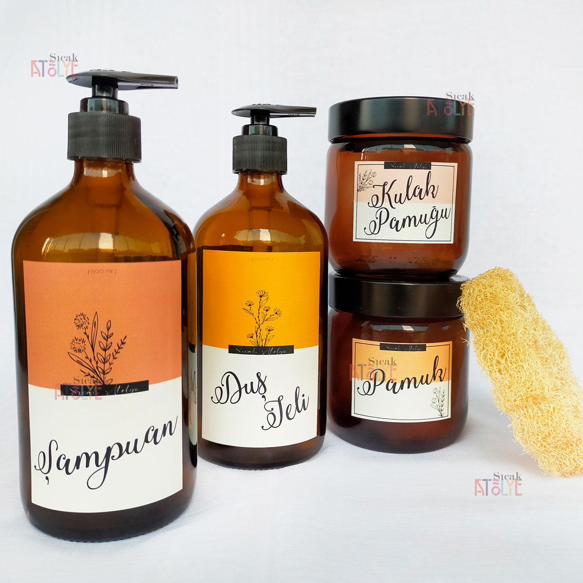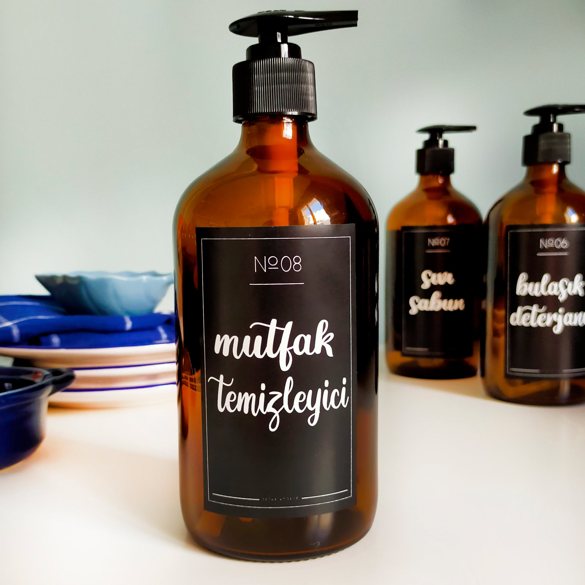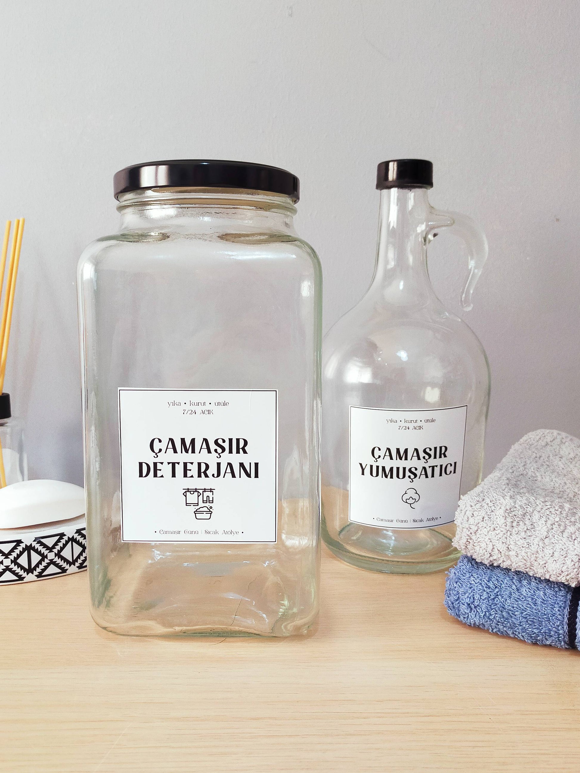 Artık şişe ve kavanozlarınız birbirine karışmayacak! Özel tasarlanmış deterjan etiketlerimiz sayesinde banyonuzda derli toplu, estetik ve modern bir görünüm oluşturabilirsiniz. Üstelik sade ve şık tasarımlarıyla banyonuzdaki dekorasyona uyum sağlar.