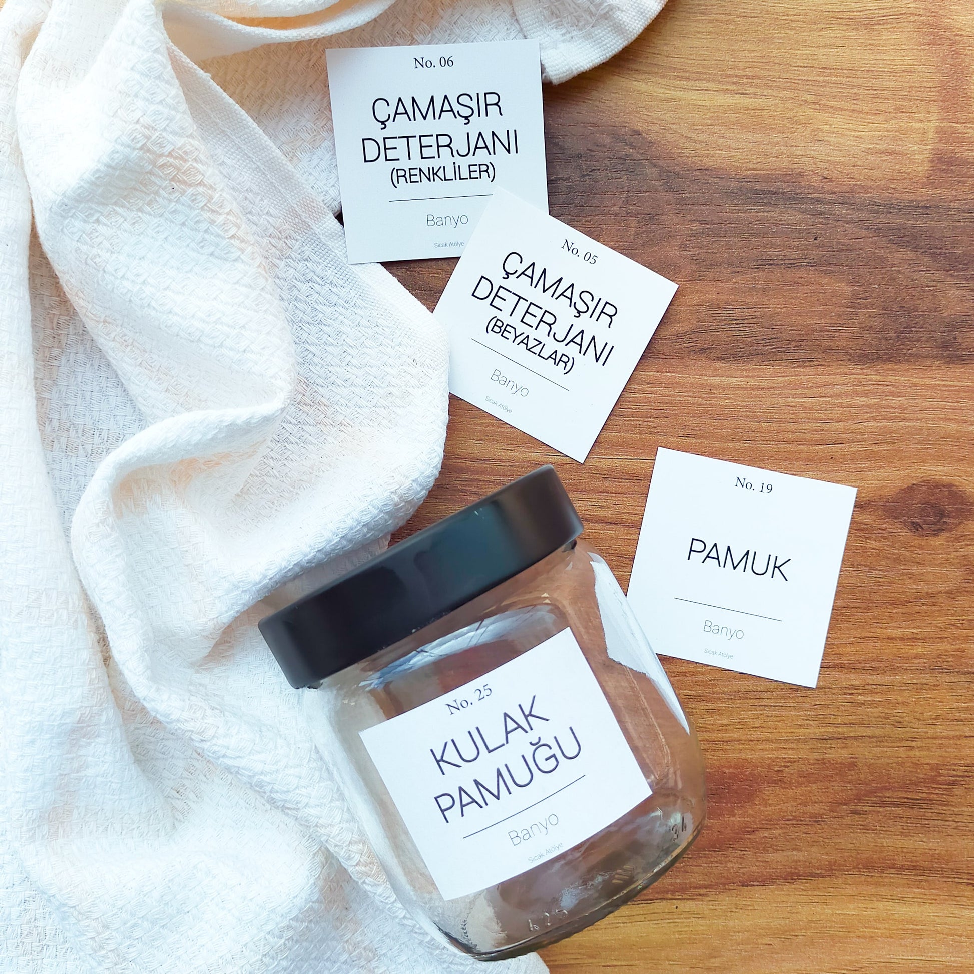 Artık şişe ve kavanozlarınız birbirine karışmayacak! Özel tasarlanmış deterjan etiketlerimiz sayesinde banyonuzda derli toplu, estetik ve modern bir görünüm oluşturabilirsiniz. Üstelik sade ve şık tasarımlarıyla banyonuzdaki dekorasyona uyum sağlar.