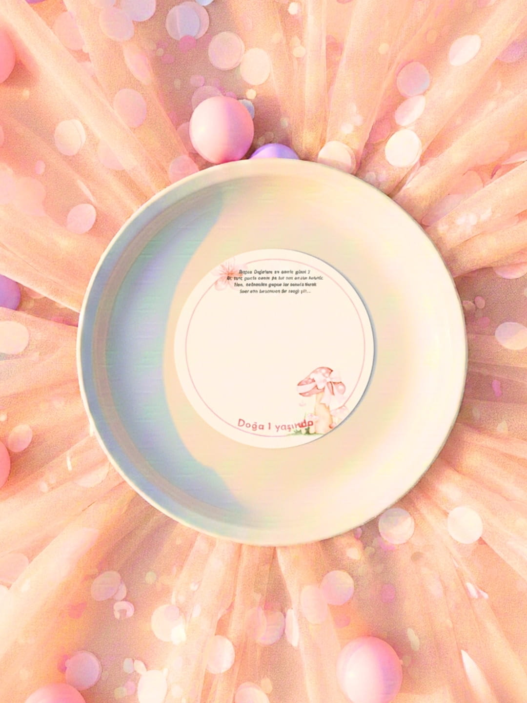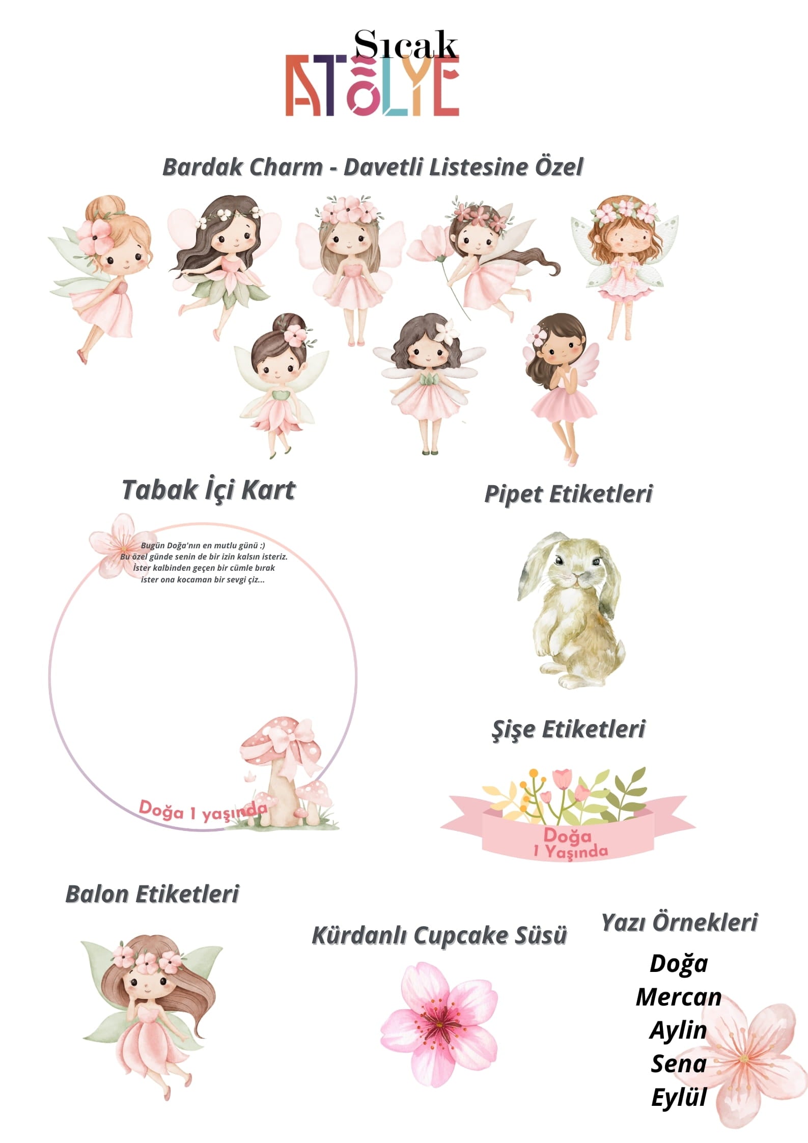 - 20 Adet Tabak İçi Hoş Geldiniz & Anı Kartı: Misafirlerinizin o güne dair güzel dileklerini yazabileceği, kutlama sonunda sizin için en değerli hazineye dönüşecek özel alanlı kartlar. Çocuk misafirleriniz de bu kartlara resimler yaparak arkadaşlıklarını anıya dönüştürebilir.