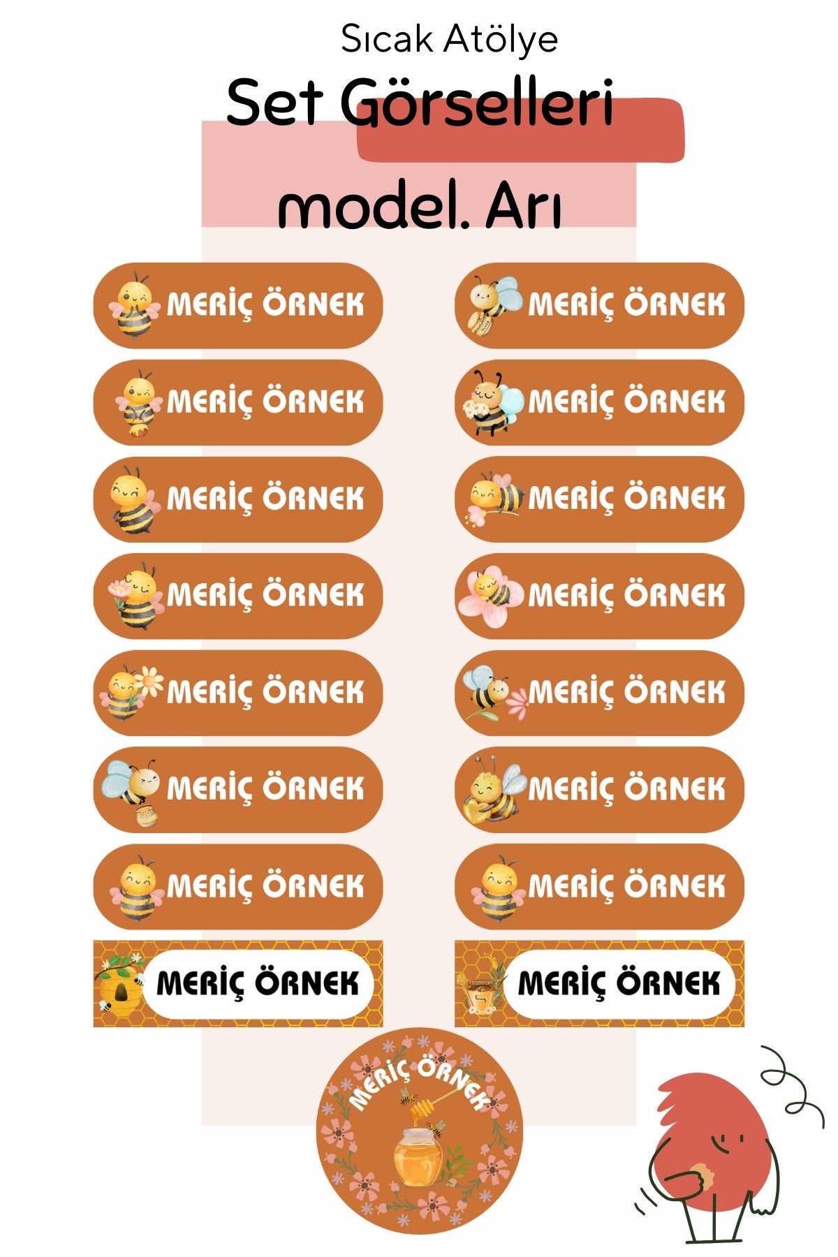 Kişiye Özel Okul Etiketleri – Dayanıklı & Sevimli Tasarım - model. Arı
