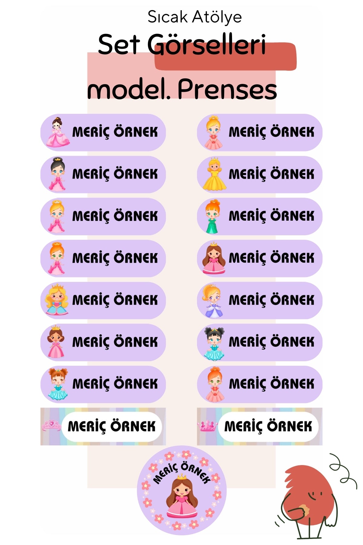 Kişiye Özel Okul Etiketleri – Dayanıklı & Sevimli Tasarım - model. Prenses