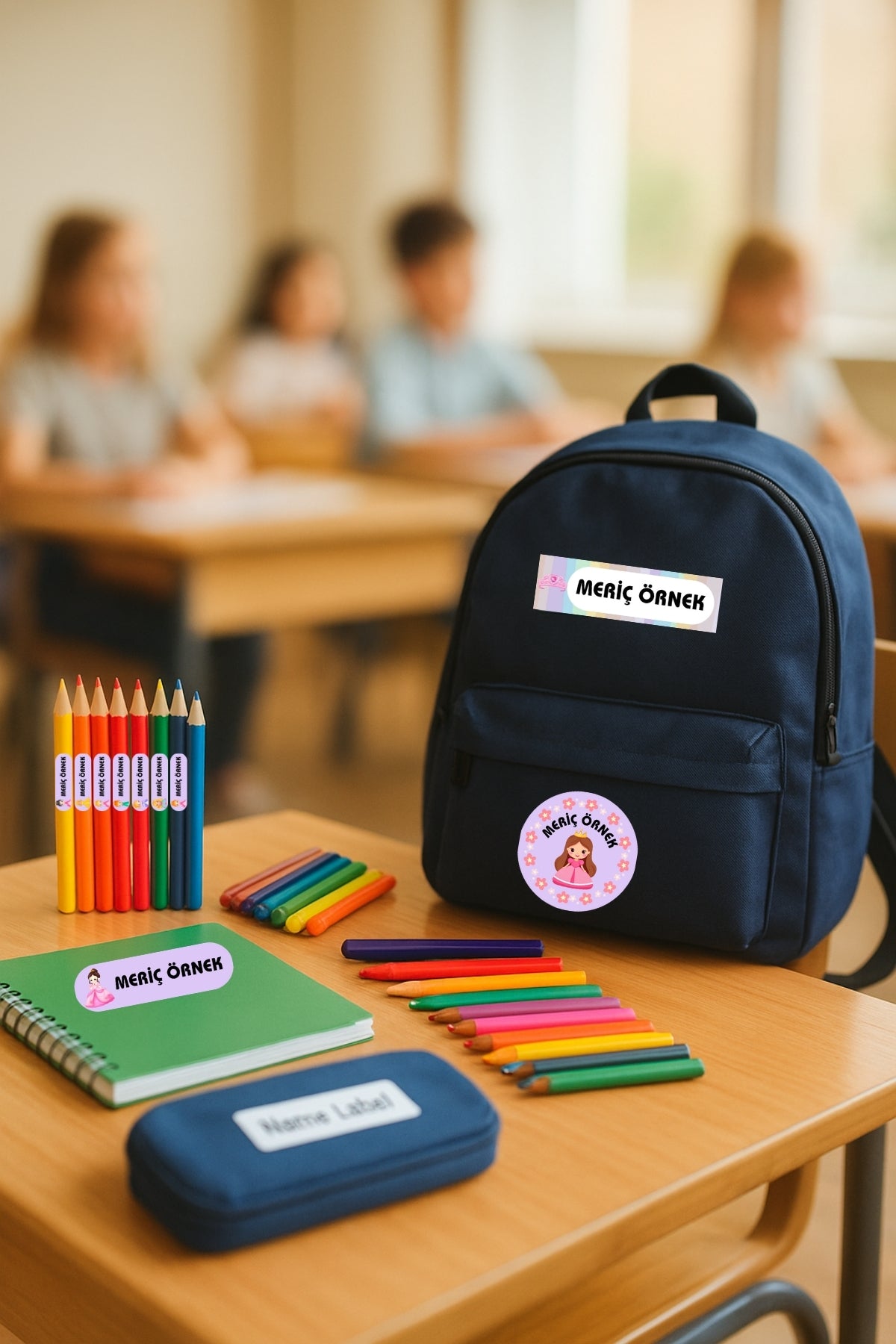 Sudan etkilenmeyen ve uzun süre yapışkanlığını koruyan bu etiketler, okul döneminde ebeveynlerin en büyük yardımcısıdır. Çocuğunuzun isminin yer aldığı sevimli görseller sayesinde hem eşyalar güvence altına alınır hem de çocuklar kendi eşyalarını severek kullanır.